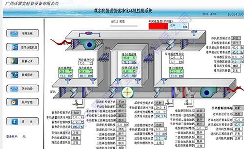 恒溫恒濕實(shí)驗(yàn)室系統(tǒng)工程為了達(dá)到溫度濕度壓差的自動(dòng)控制,為了實(shí)現(xiàn)功能控制系統(tǒng)采用DDC控制,裝設(shè)在回風(fēng)管內(nèi)的溫度傳感器所檢測(cè)的溫度送往DDC控制器與設(shè)定點(diǎn)溫度相比較,用比例積分加微分控制,輸出相應(yīng)的電壓信號(hào),控制裝在回水管上的電動(dòng)調(diào)節(jié)閥的動(dòng)作,使回風(fēng)溫度保持在所需要的范圍。裝設(shè)在送風(fēng)管內(nèi)的濕度傳感器所檢測(cè)的濕度送往 DDC控制器與設(shè)定點(diǎn)濕度比較,用比例積分控制,輸出相應(yīng)的電壓信號(hào),控制電動(dòng)蒸汽閥的動(dòng)作,使送風(fēng)濕度保持在所需要的范圍。裝設(shè)在回風(fēng)管及新風(fēng)管的溫度及濕度傳感器所檢測(cè)的溫/濕度送往DDC控制器進(jìn)行回風(fēng)及新風(fēng)焓值計(jì)算,按回風(fēng)及新風(fēng)焓值的比例,輸出相應(yīng)的電壓信號(hào),控制回風(fēng)風(fēng)門及新風(fēng)風(fēng)門的比例開度,使系統(tǒng)節(jié)能。